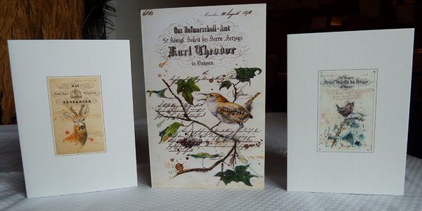 Landschafts-Aquarelle & Tierportraits auf historischen Dokumenten
